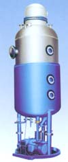 整個(gè)設(shè)備可分為加熱蒸發(fā)室、加熱夾套、汽液分離器、攪拌器等四部分。我廠在夾套加熱的基礎(chǔ)上經(jīng)多方面研究,設(shè)計(jì)了內(nèi)加熱、內(nèi)循環(huán)加熱、蒸發(fā)結(jié)晶鍋,用戶(hù)使用后反映其蒸發(fā)效果好。